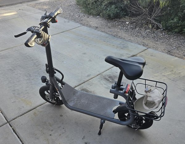 One thing I didn’t expect was how easy it was to fold up the scooter. When I was done riding, I just folded it up and tossed it in the trunk of my car without any hassle. The scooter isn’t super light at 44 lbs, but it’s still manageable, especially with the removable rear basket. It’s great for running errands or even bringing along a small pet, since the basket can hold up to 39.6 lbs.